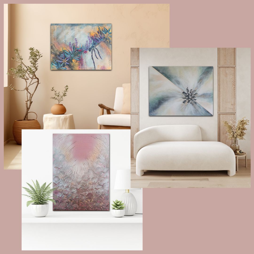 Vårt liv i Boden började i en stor hyresrätt där de tomma väggarna blev många. Jag har alltid beundrat abstrakt konst men hade inte budget att köpa in så många konstverk jag önskade, så jag började helt enkelt måla själv. Jag hade aldrig räknat med att jag ett år senare skulle livnära mig på konsten och sälja alster runt om i hela Sverige och internationellt.