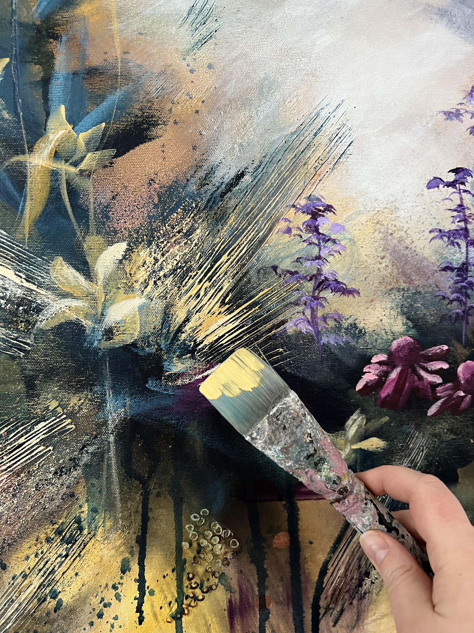 -Tolka blommor på ett mer abstrakt sätt med lediga penseldrag.